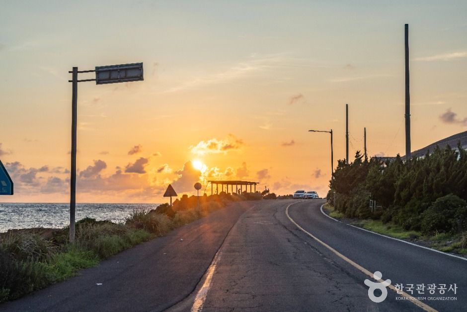 노을해안로는 이름에 걸맞게 일몰에 가면 멋진 노을을 감상할 수 있는 곳이다. 노을 뷰가 멋진 곳으로 알려졌지만 돌고래를 볼 수 있는 곳으로도 유명하다. 도로 주변을 지나다 보면 돌고래 관련 커피숍, 펜션 등의 상호들을 심심치 않게 볼 수 있다. 노을해안로는 대정읍 일과리에서 신도 1리로 향하는 약 12㎞ 코스로 국토해양부에서 선정한 전국 52개의 해안 누리길 중 46코스에 속하는 길이다. 해안 길 곳곳에 전망대와 정자가 있어 쉬어 가며 경치를 볼 수 있고 날씨가 좋을 경우, 후반부 2㎞ 구간에서는 마라도의 모습까지 볼 수 있다. 제주 해안 길 중 일몰이 가장 아름답다는 후기로 유명하다.