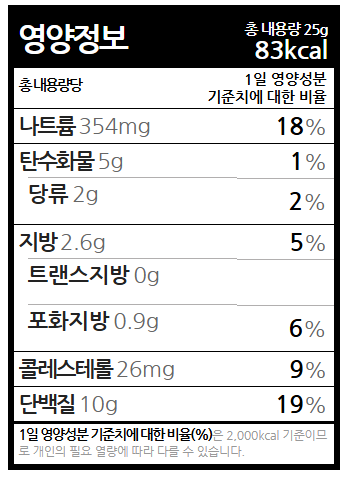 | 영양성분 (영양성분 표시대상 식품에 한함) | 상세정보 별도표기 |