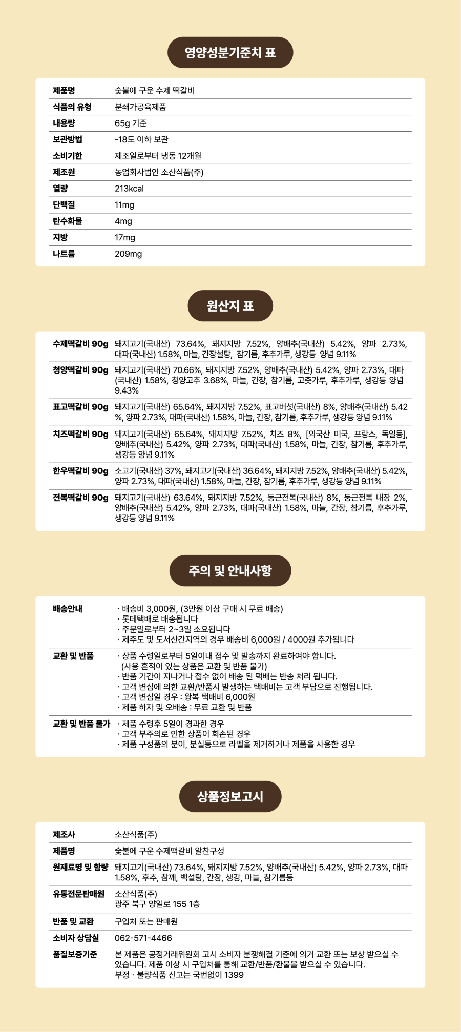 | 생산자 및 소재지(수입품의 경우 생산자, 수입자 및 제조국) | 농업회사법인 소산식품 주식회사 |