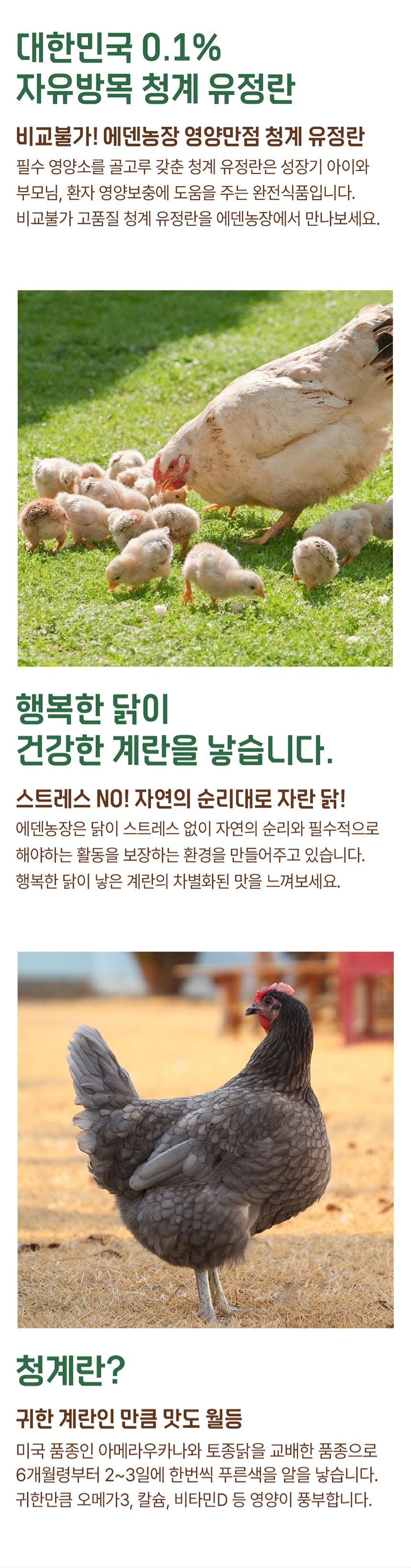 | 상품구성 | 청란30구 (청란) / 혼합25구 (청란/백봉오골계란/재래란) |