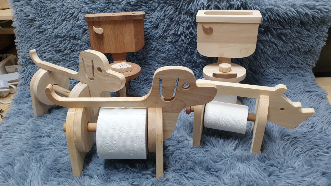두루마리 휴지를 거치해 사용할수 있는 목공예