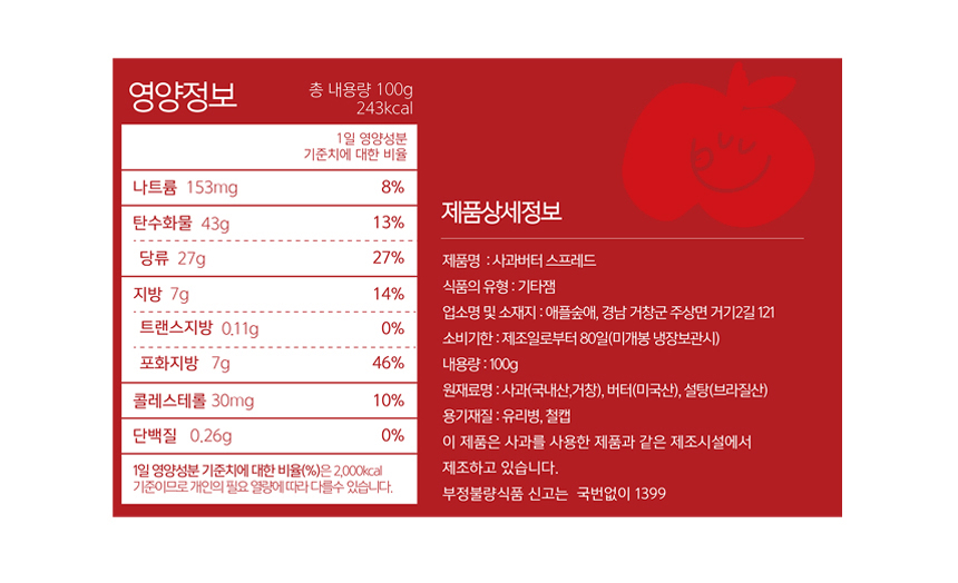 사과숲애 100% 수제 사과 버터 스프레드100g*2병