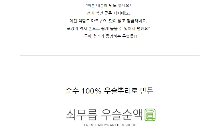 | 제품명 | 유기농 저온추출 우슬즙 선물용 100ml 30포 |