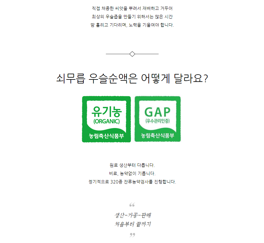 | 원재료명 (「농수산물의 원산지 표시 등에 관한 법률」에 따른 원산지 표시 포함) 및 함량(원재료 함량 표시대상 식품에 한함) | 유기농 우슬뿌리100% |