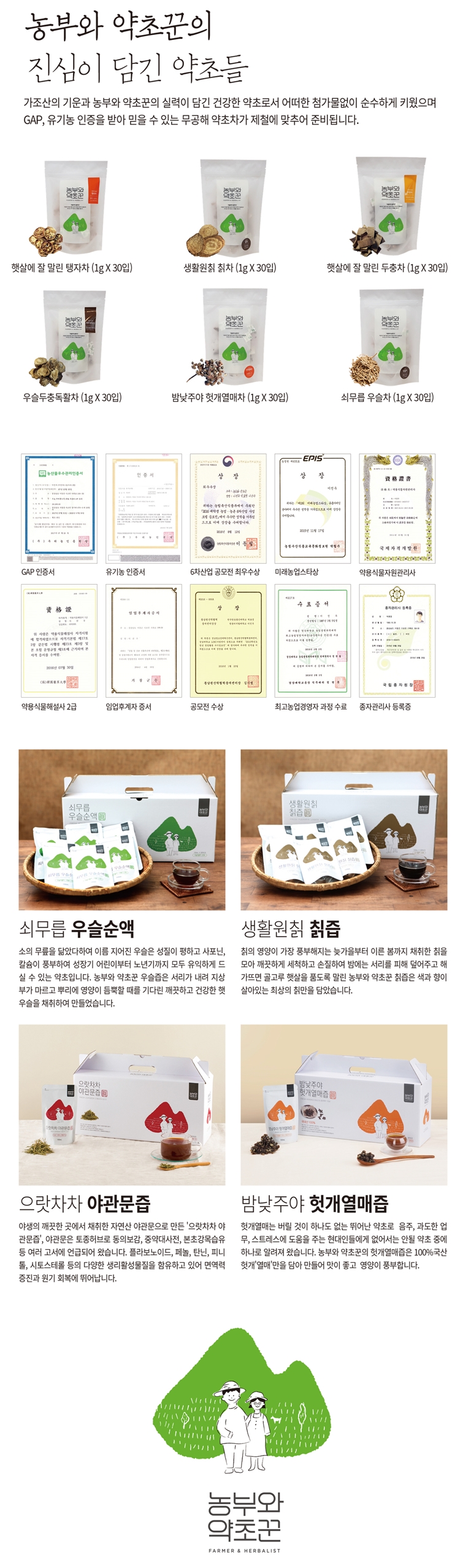 | 생산자 및 소재지(수입품의 경우 생산자, 수입자 및 제조국) | 농부와약초꾼 |