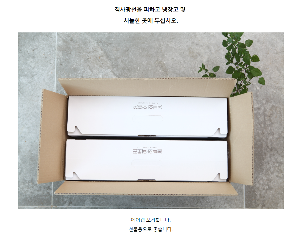 직사광선을 피해 서늘한 곳에 보관하시고, 개봉 후에는 최대한 빨리 드십시오.