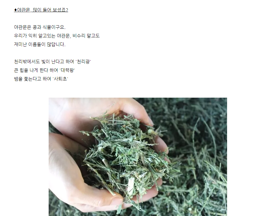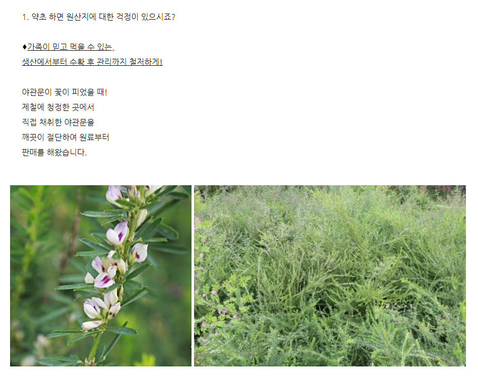 원재료명 및 함량 : 비수리(야관문) 100% 국내산 100%