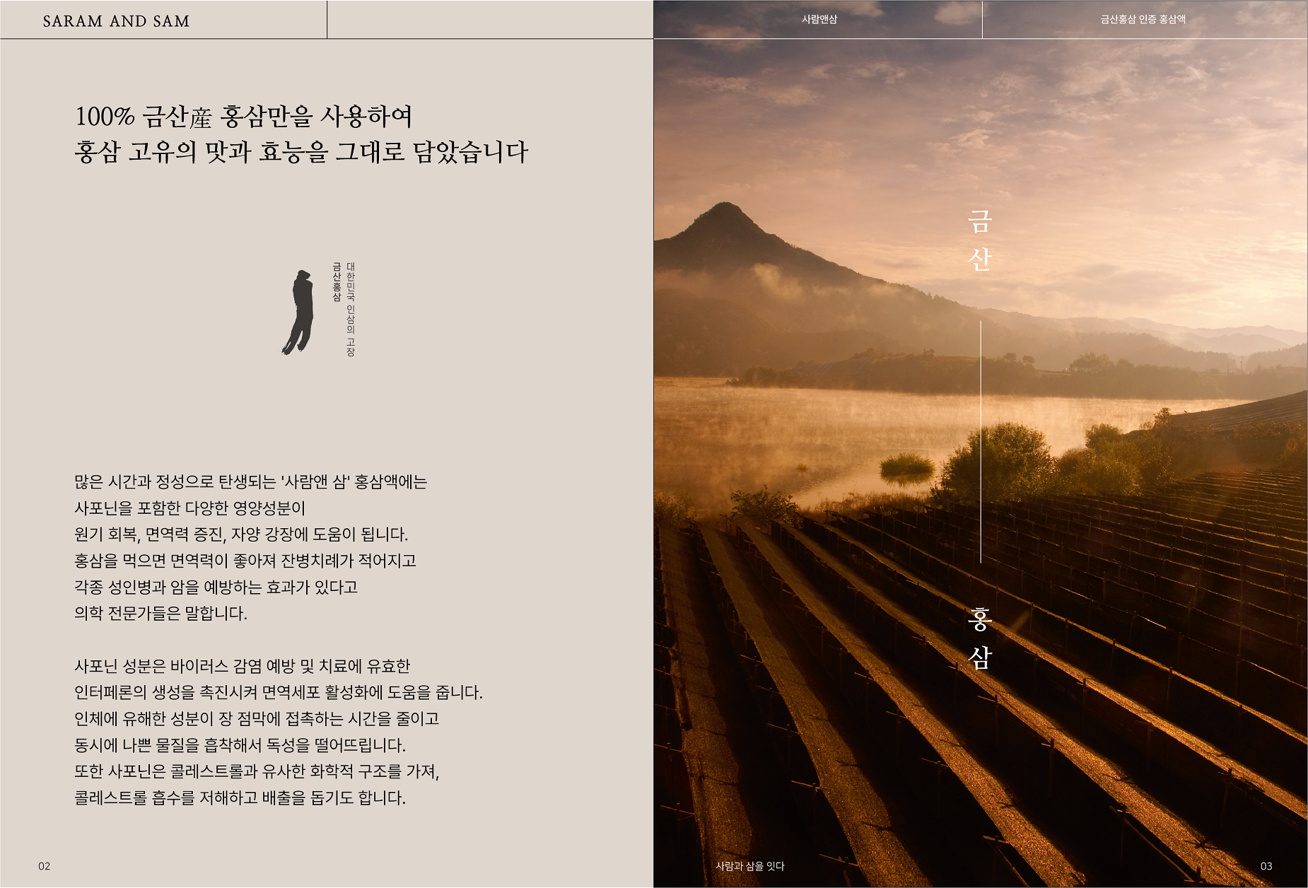 -원재료명 및 함량: 홍삼농축액20%(고형분65%이상, 진세노사이드 Rg1+Rb1+Rg3의 합 5.5mg/g,국산), 정제수 20% (원료삼 배합비율: 홍삼근70%, 홍미삼30% 국산)