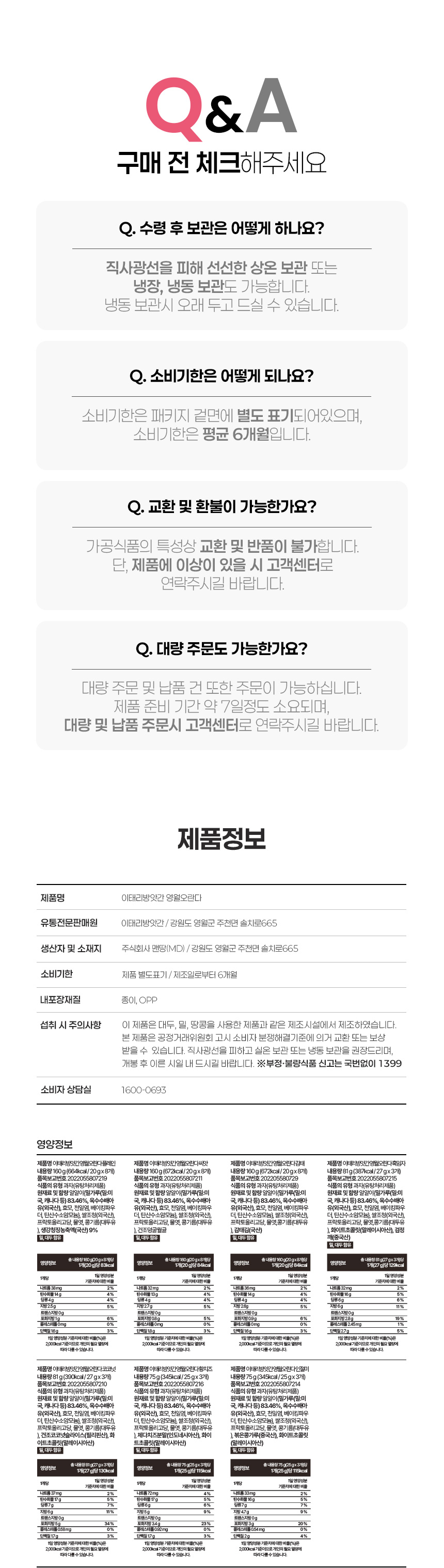 | 영양성분 (영양성분 표시대상 식품에 한함) | 상세정보 별도표기 |