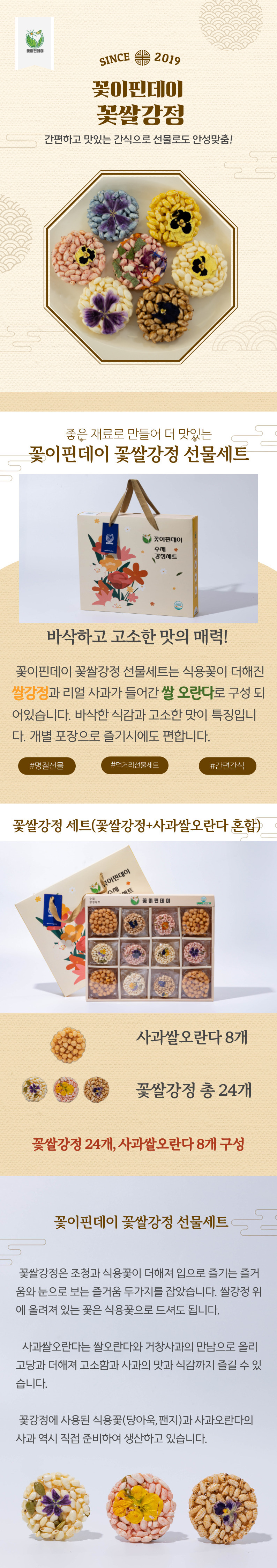 [꽃이핀데이] 거창 쌀로 만든 꽃강정세트 32개(사과쌀오란다 8개+꽃쌀강정 24개)