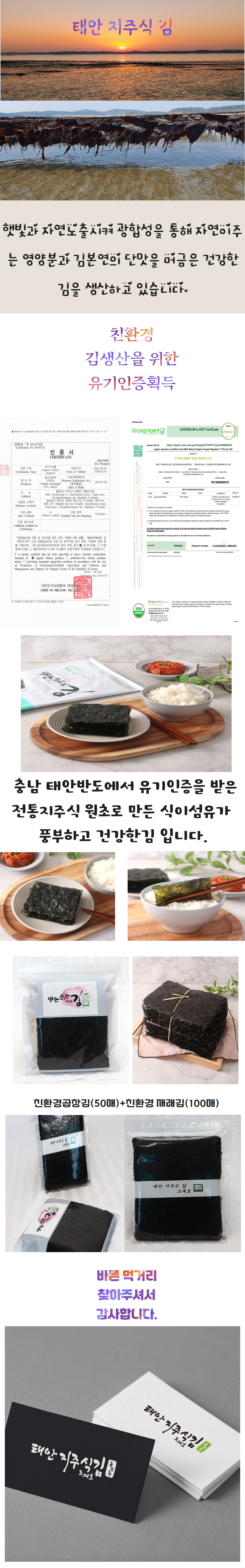친환경 인증 태안지주식 김 2종세트 1호 150매(재래김 100매+곱창김 50매)