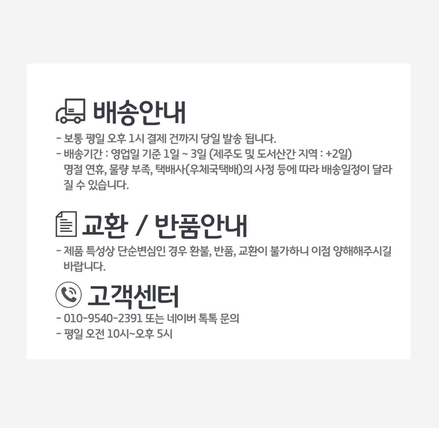| 소비자상담 관련 전화번호 | 010-9540-2391 |