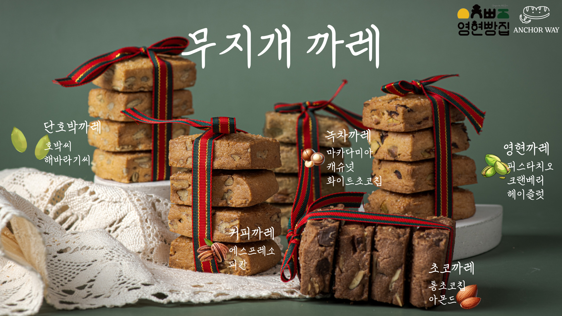 무지개까레는 전남 목포의 바다에서 자란 김을 비롯해, 단호박, 견과류, 녹차, 커피 등 자연 재료의 풍미를 담아 정성껏 구운