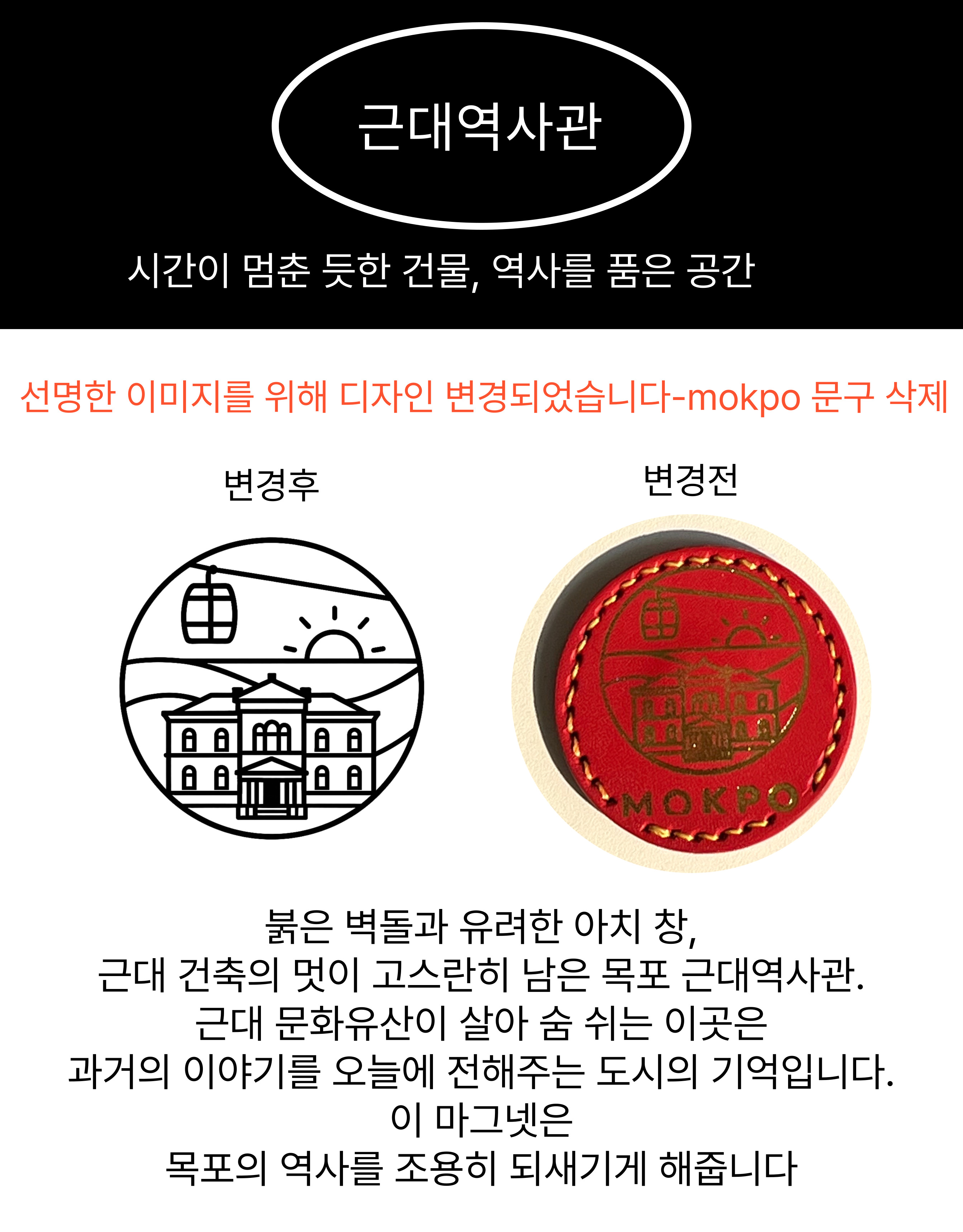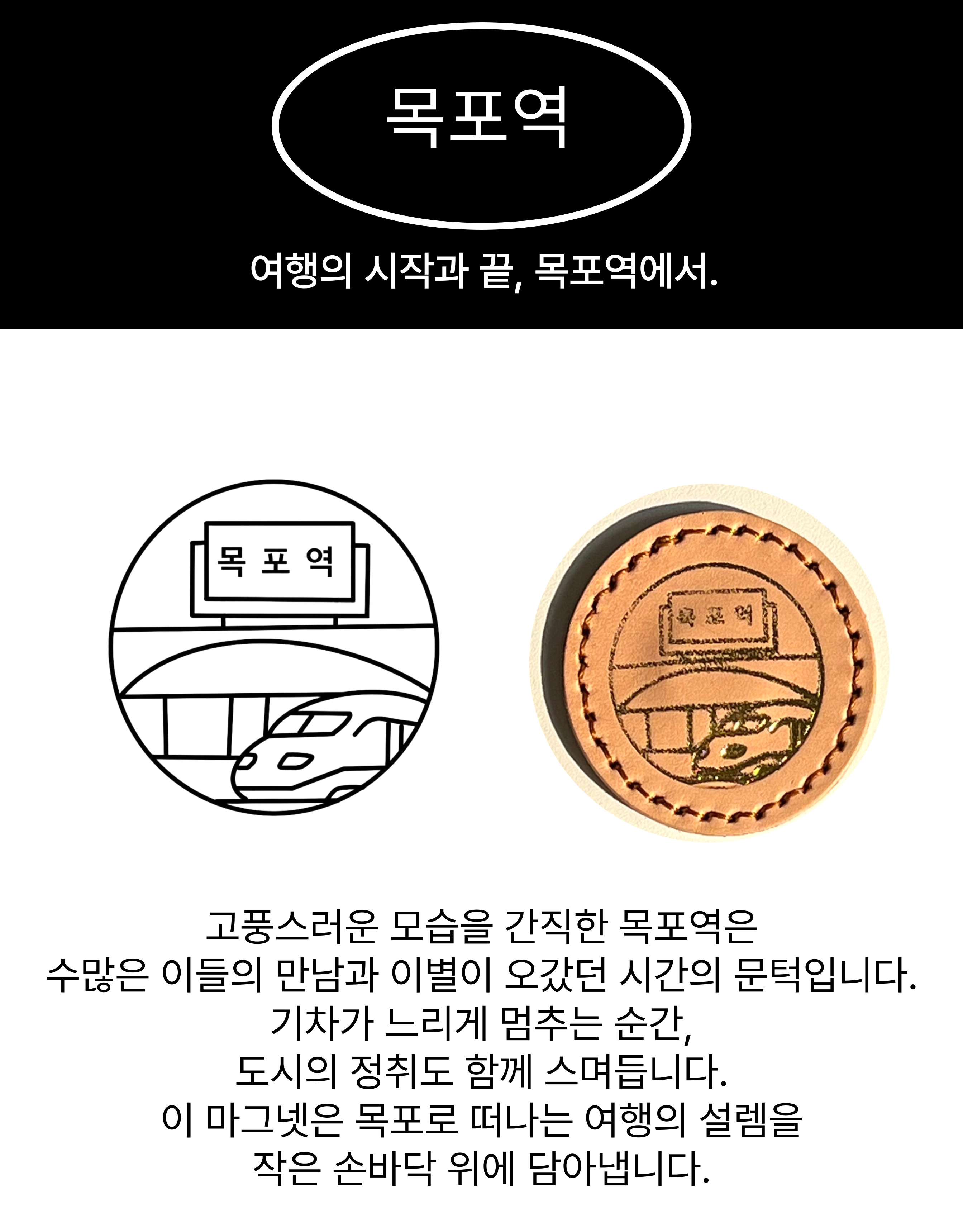 목포를 담은 가죽 마그넷 6종 세트(원형 지름 34mm*5개+사각 75*35mm*1개)