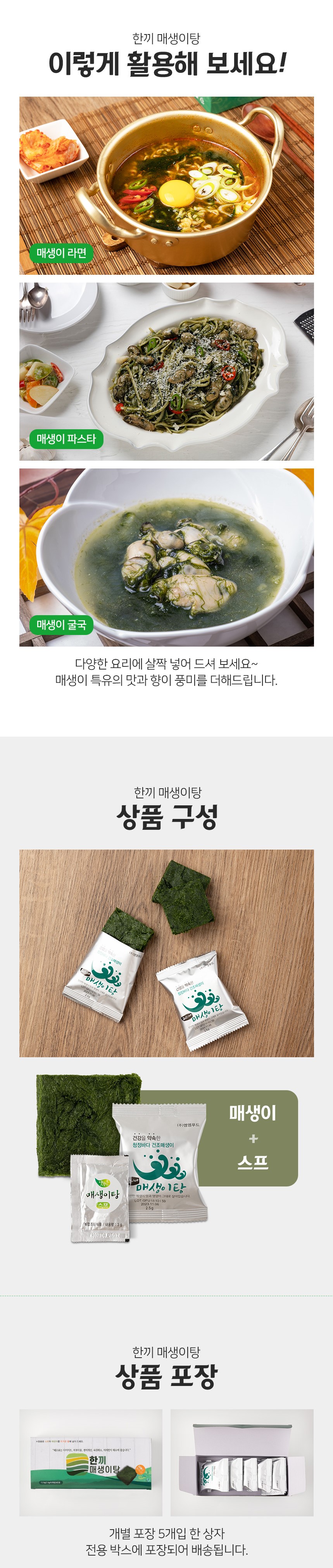한끼매생이탕(5개입)이 선물박스에 담겨 제공됩니다!!