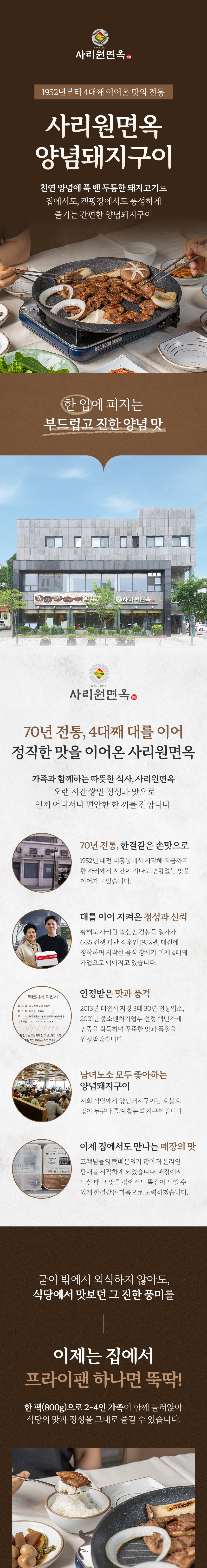 4대째 이어지는 백년가게 사리원면옥 양념돼지구이 2.4kg(800g*3팩)