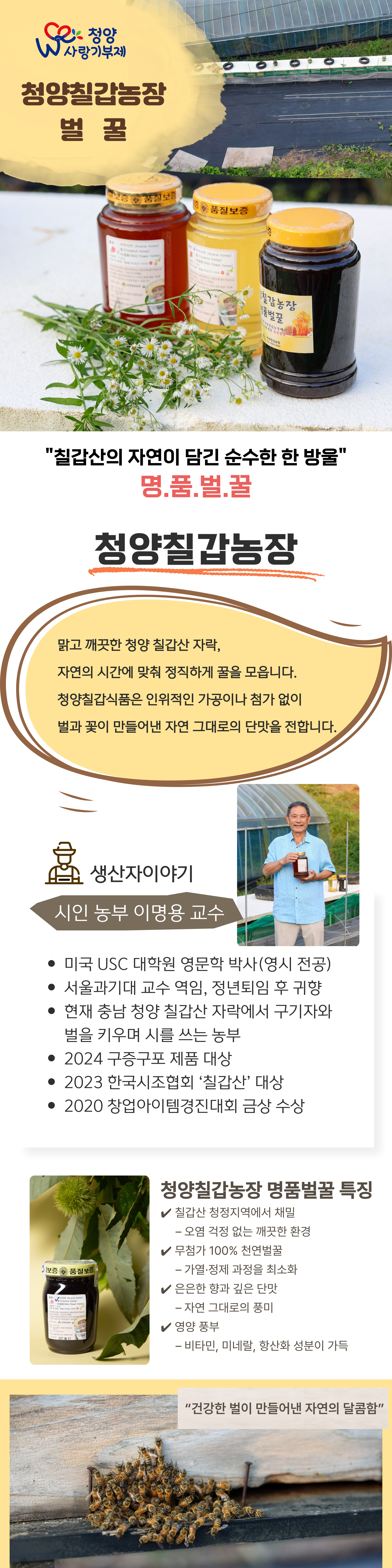 | 품목 또는 명칭 | 청양칠갑농장 명품 야생화꿀 1.2kg |