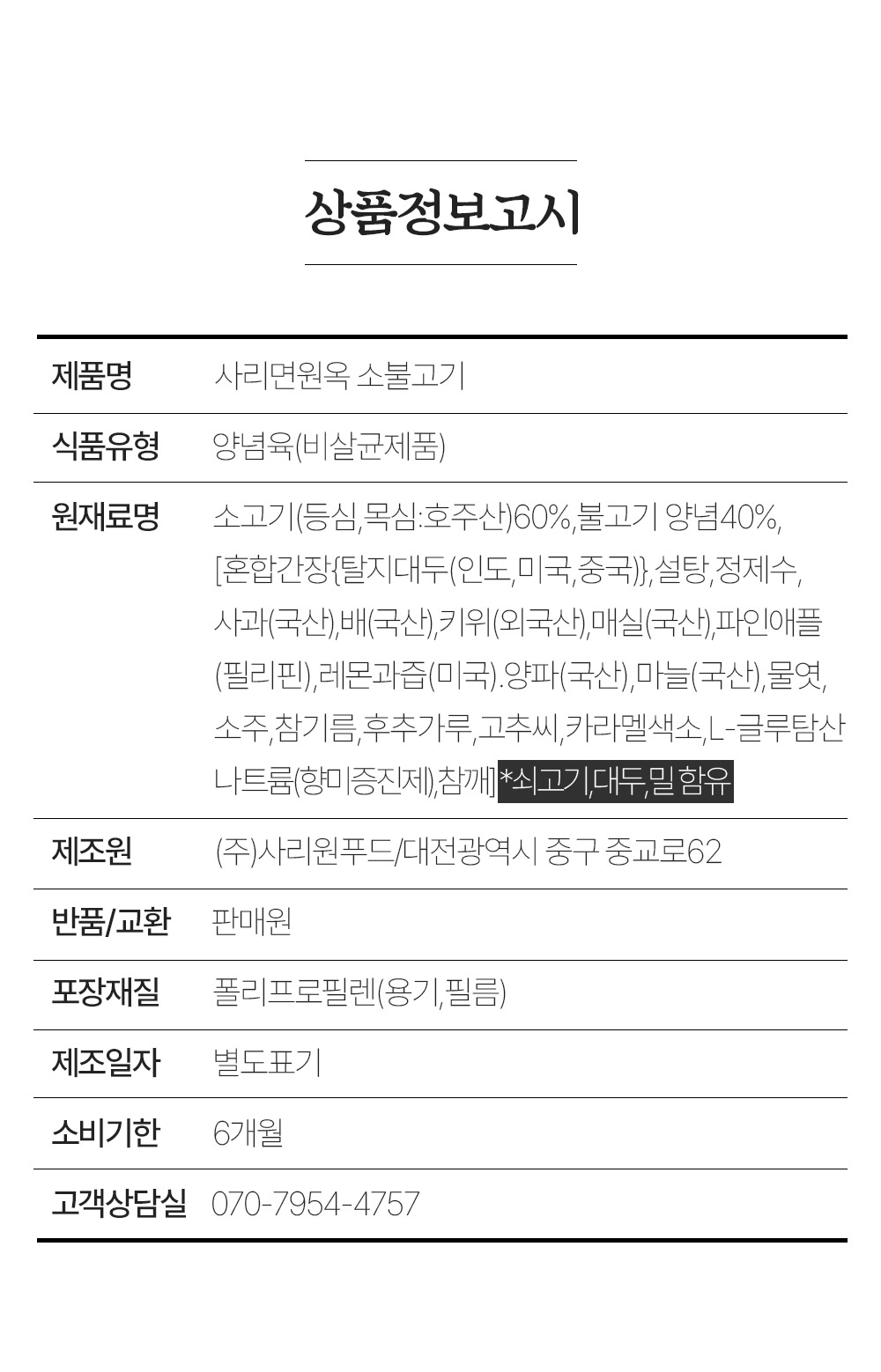 | 생산자 및 소재지 | 주식회사 사리원푸드 |