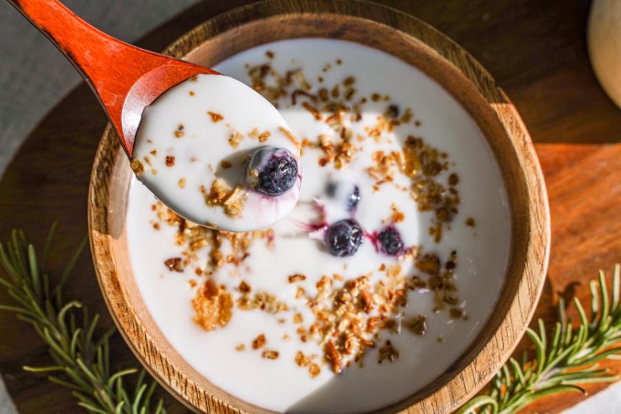 해늘찬에서는 달지 않은 플레인 요구르트를 만듭니다