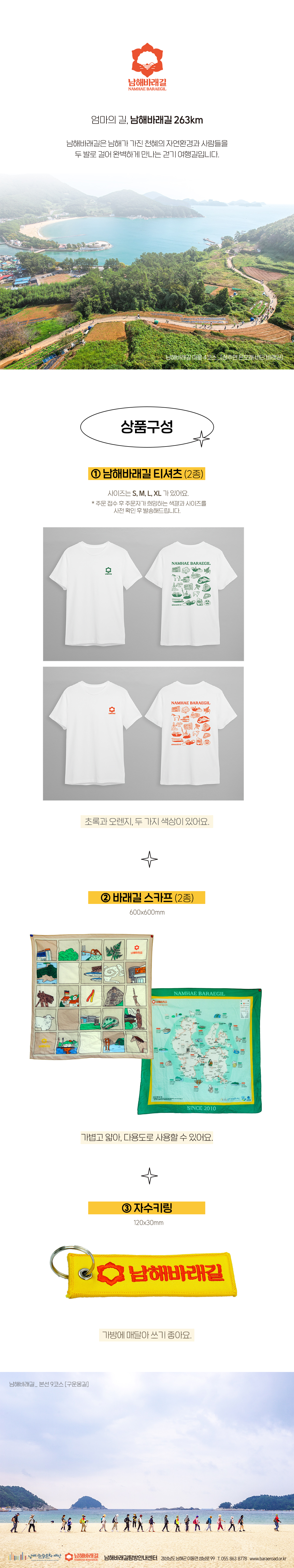 남해바래길 굿즈 세트 1 (티셔츠+스카프+자수키링)