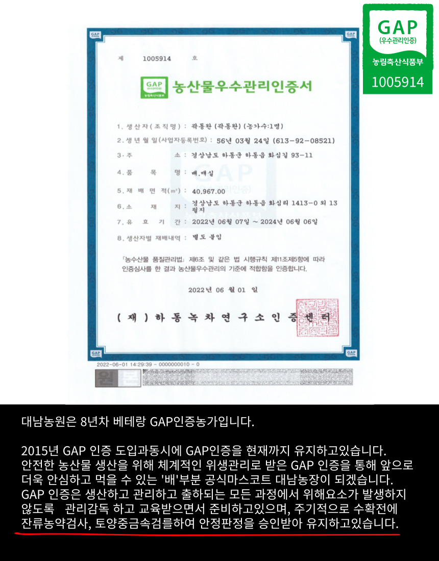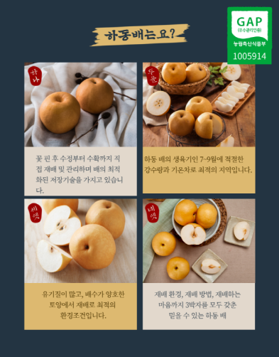 40년축적된 배재배기술로 가장맛이좋을떄 수확하여 물많고 당도좋은배로