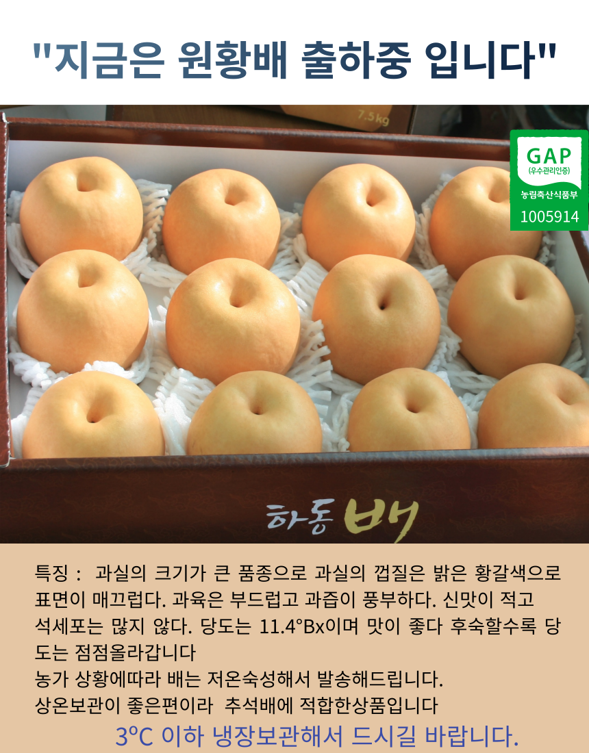 | 생산자/수입자 | 햇배 햇배7.5kg 중사이즈15-16과 |