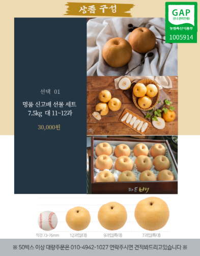 | 상품구성 | 햇배 햇배7.5kg 중사이즈15-16과 |