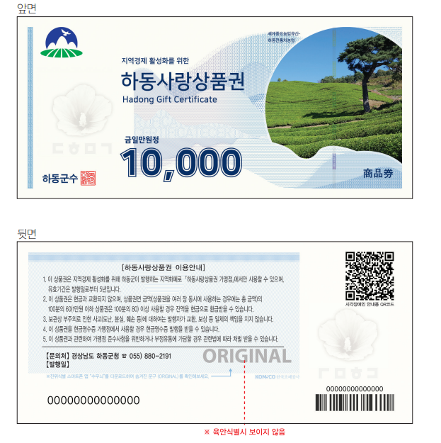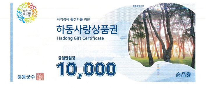 - 하동사랑상품권은 교환,환불 불가함을 알려드립니다.