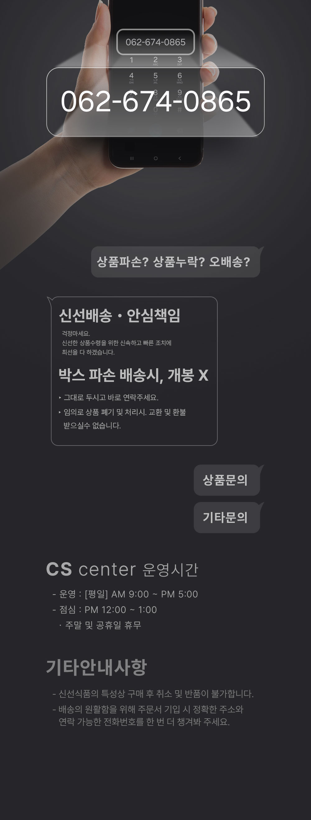 | 소비자 안전을 위한 주의사항 | 반드시 수령후 냉장 보관해주세요 |