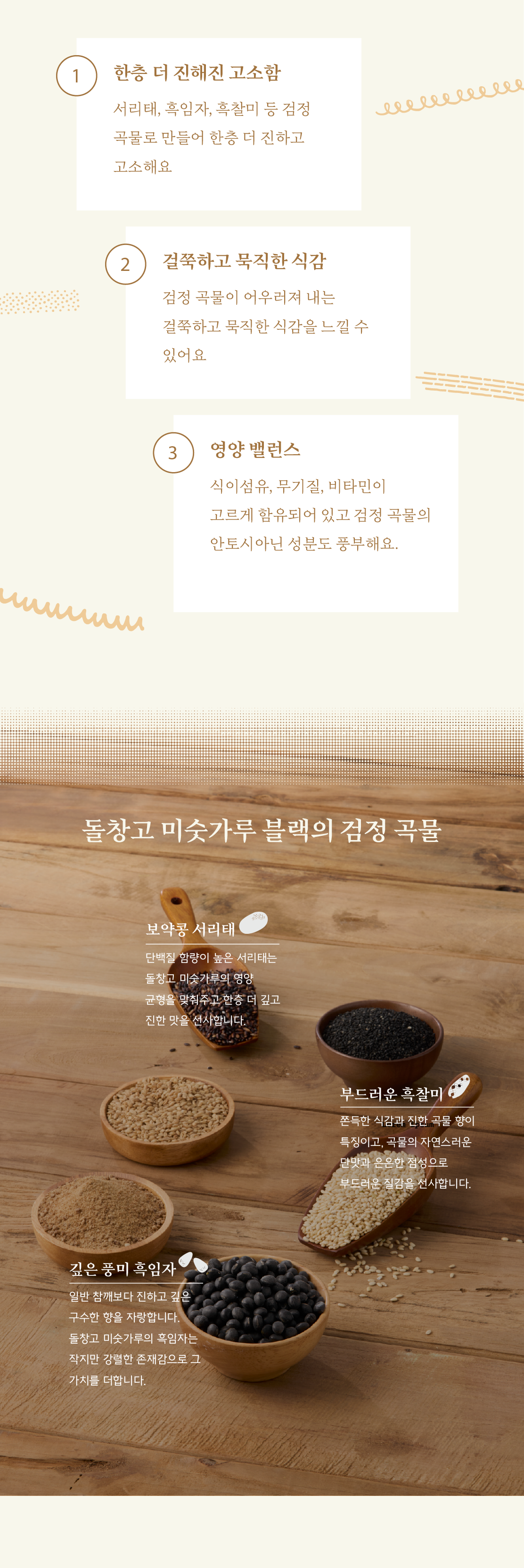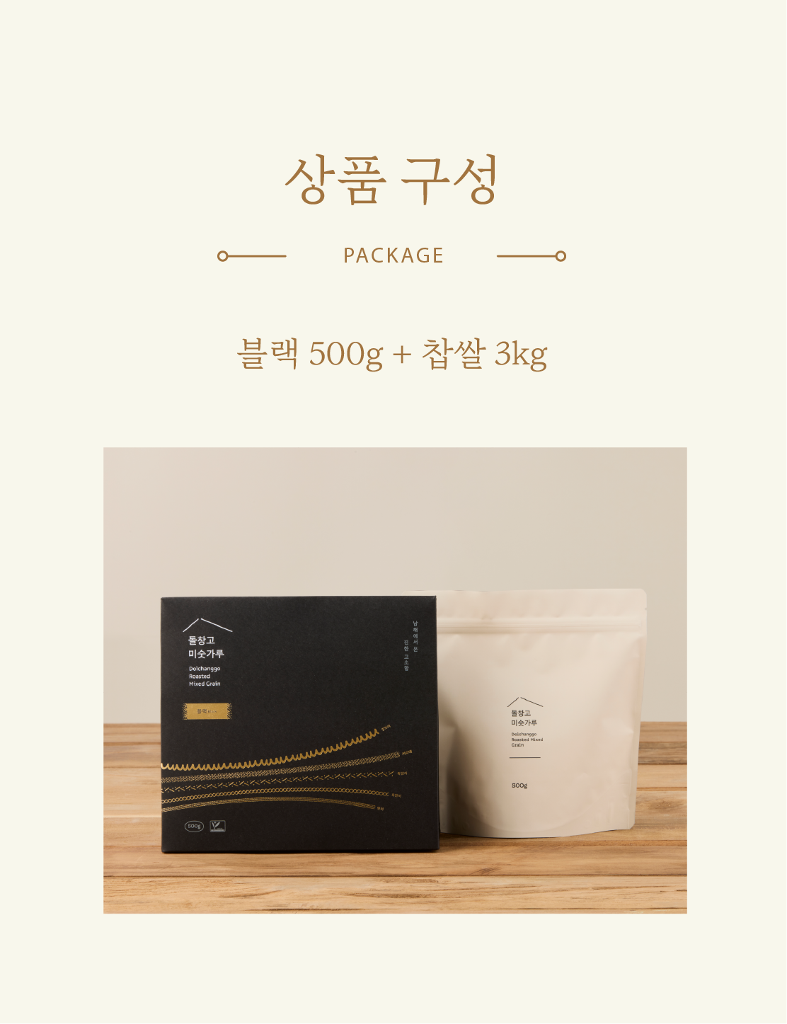 | 상품구성 | 돌창고 미숫가루 블랙 500g+찹쌀 3kg |