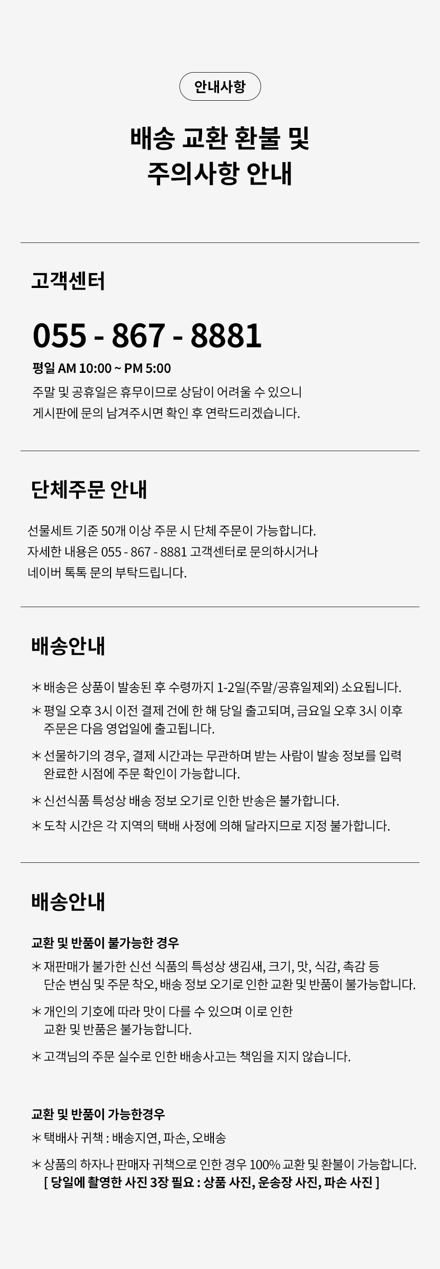| 소비자상담 관련 전화번호 | 055)867-8881 |