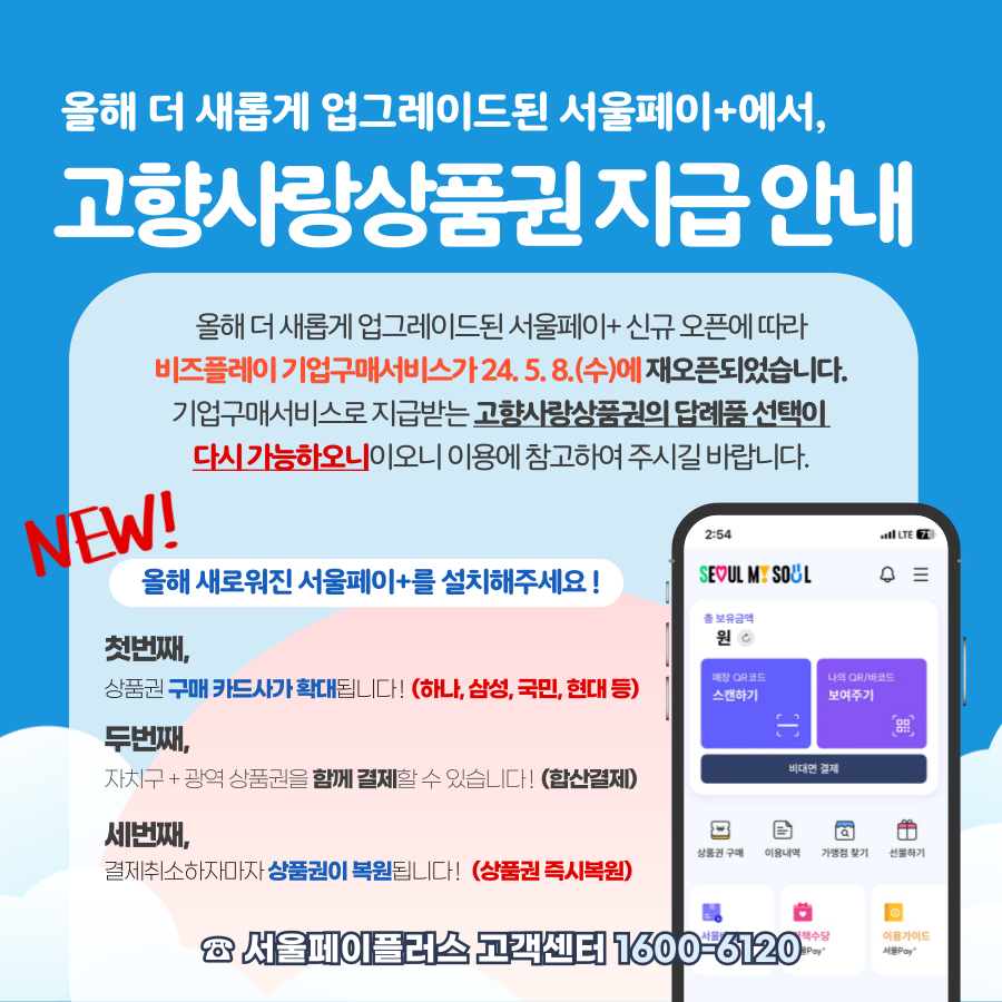 서울페이+ 신규 버전 설치 후 고향사랑상품권 사용가능합니다.
